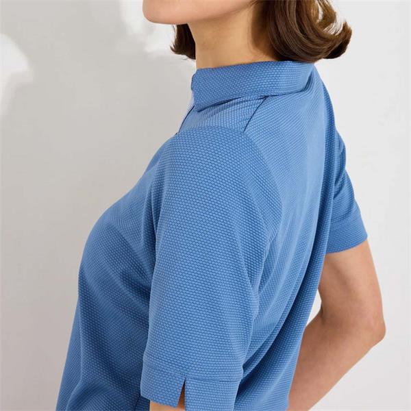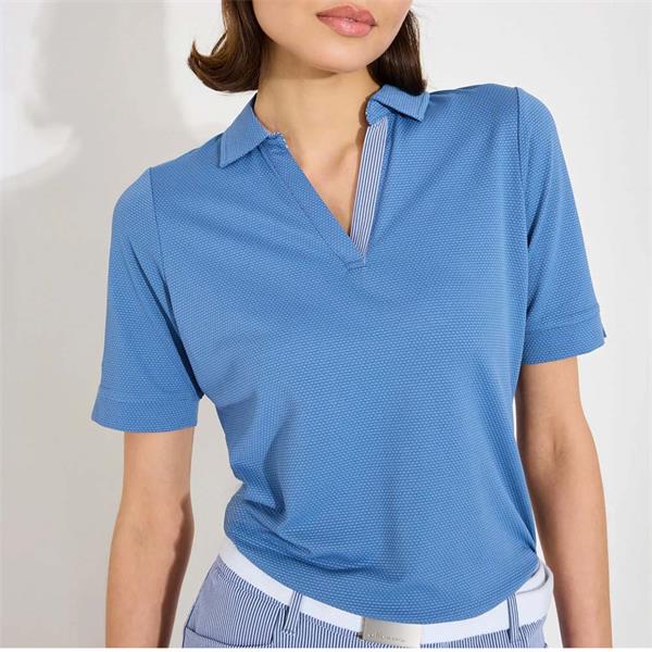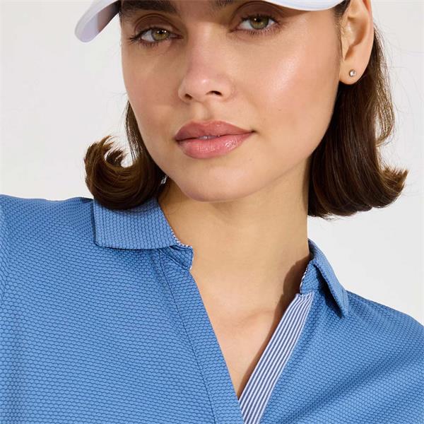A coordinated outfit, expressing your style, can boost spirit both on and off the golf course. Bovey halfsleeve is a sporty, feminine top in a tactile structured fabric with stretch that allows you to swing and move comfortably. The breathable function wicks away heat and moisture, leaving you as fresh after 18 holes as on the first tee.