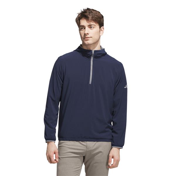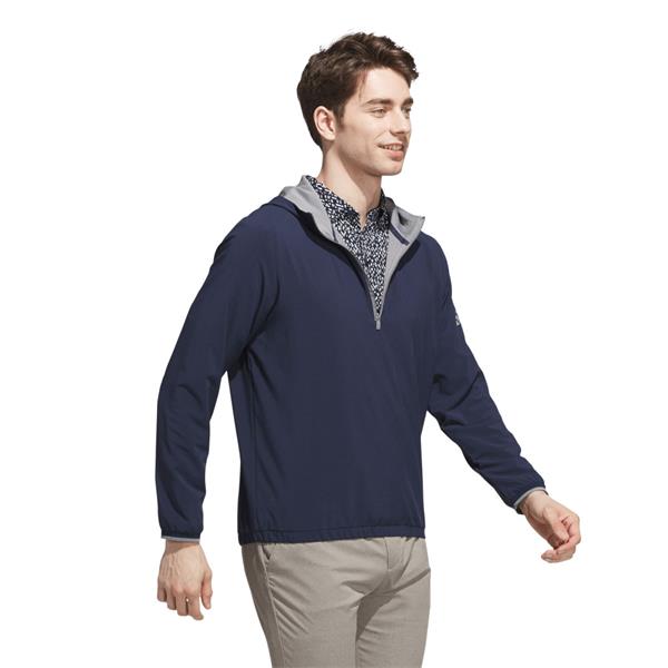 Layer up and focus on your swing. This adidas golf anorak jacket balances athletic style and performance for the course. A regular fit and light stretch offer full mobility for clean drives and focused putts. A half-zip and drawcord-adjustable hood let you adjust the look.