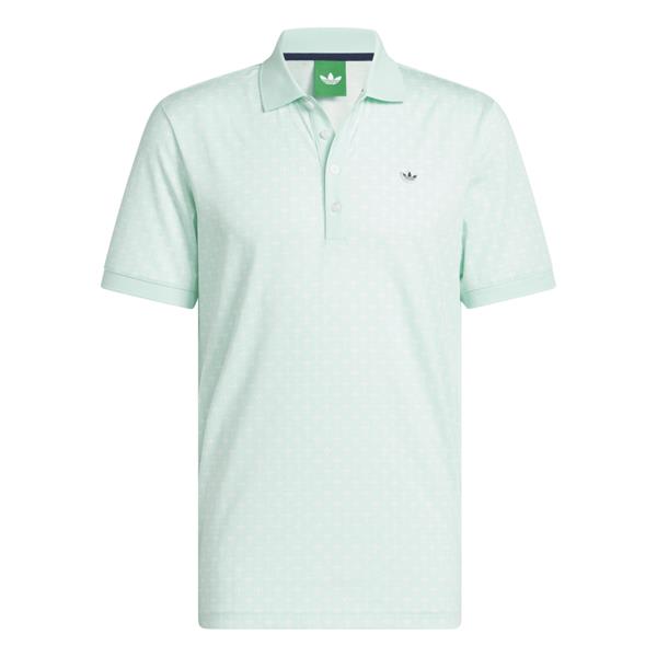 adidas Gents All Over Trefoil Polo Shirt Clear Mint - Chalk White
