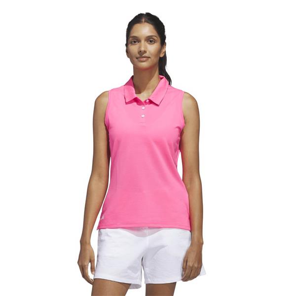 adidas Ladies Ottoman Solid Sleeveless Polo Shirt Lucid Pink