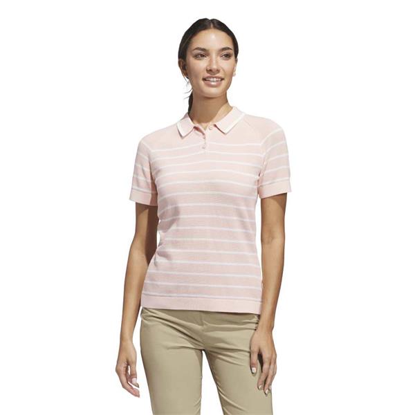 adidas Ladies Ultimate365 Stripe Polo Shirt Blush Pink