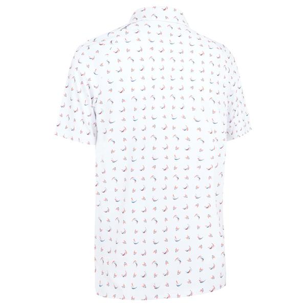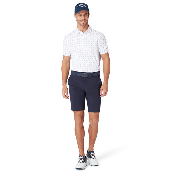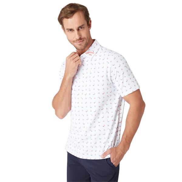 Stand out on the course and beyond in this golf polo by Callaway that features an abstract print for a unique twist in a classic silhouette. Crafted for performance as well as style, this golf polo shirt includes stretch and Swing Tech™ for freedom of movement with every swing. This men's golf shirt includes sun protection and wicks away moisture, making it a great pick for sunny day games.