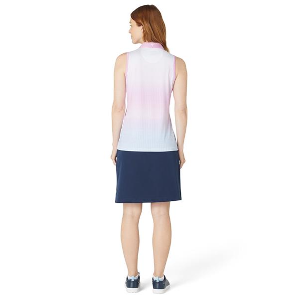 Get sustainable style when it comes to your golf clothes with this Callaway women's golf shirt. Featuring an all-over gradient pattern, this sleeveless golf shirt has a modern aesthetic that elevates your golf look. The lightweight fabric wicks away moisture for a cool and dry feel and includes recycled materials, making it an eco-friendly choice.
