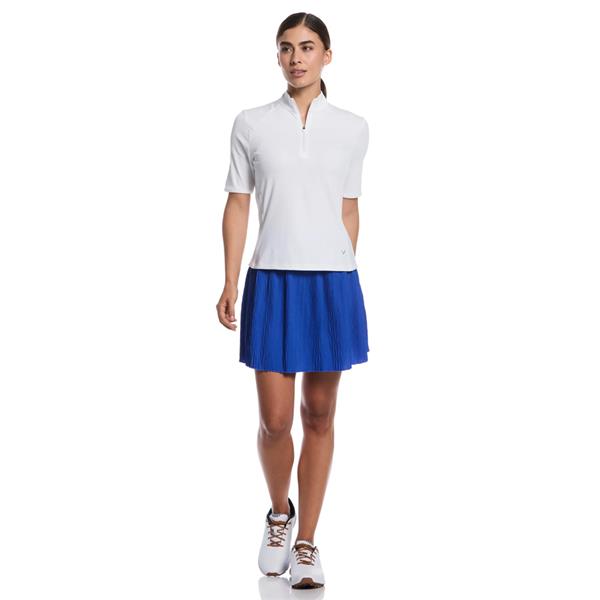 Step onto the green in graceful style with the Callaway Apparel women's micro pleated golf skort. Crafted from a novelty polyester fabrication, this golf skort offers an elegant look and exceptional performance. Designed with Opti-Dri technology, it efficiently wicks away moisture, keeping you dry and comfortable through every swing and stride. The flexible stretch fabric ensures comfortable wear as you move. Its easy-care properties make it a perfect addition to your golf wardrobe for effortless sophistication.