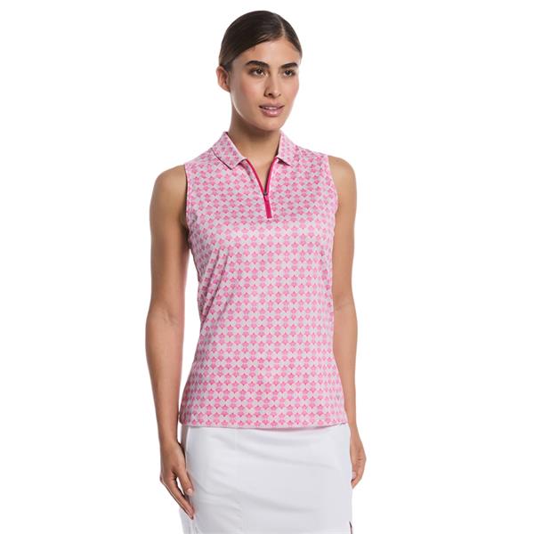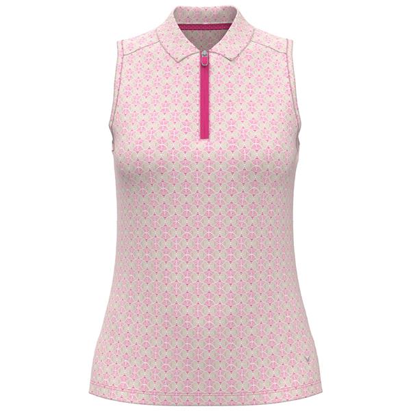 Callaway Ladies Sleeveless Deco Geo Print Polo Shirt Fuchsia Purple (657)