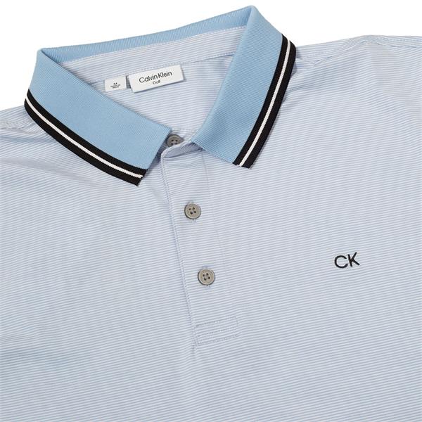 Calvin Klein Golf Gents Mini Stripe Polo Shirt Dusty Blue - White