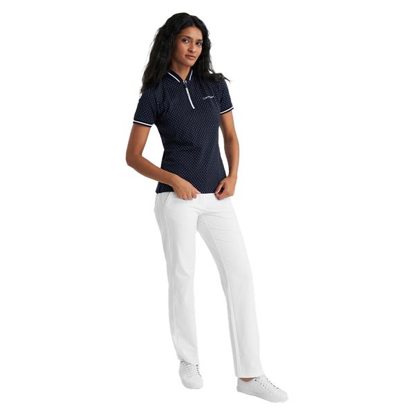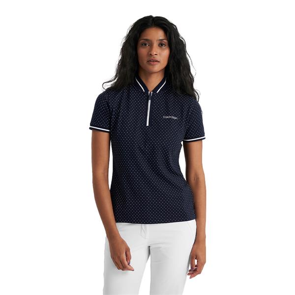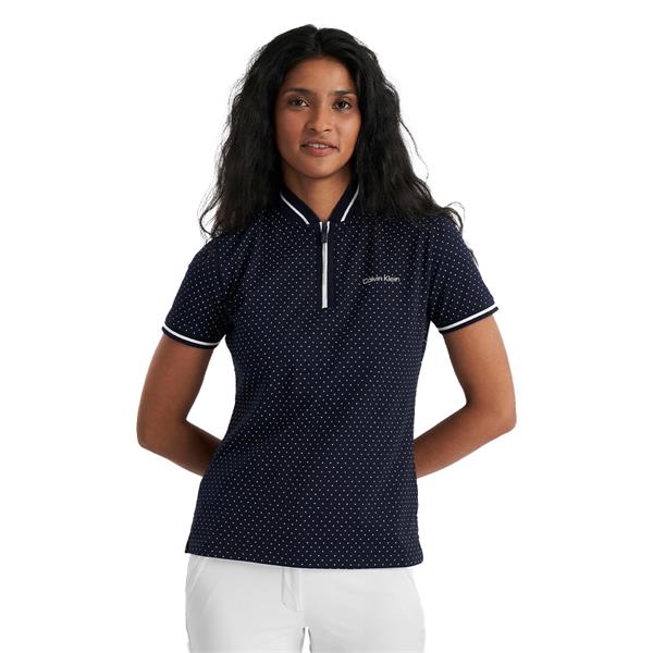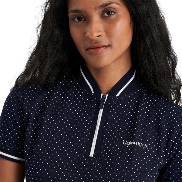 Add a playful dimension to your on-course style with the Camillia Polo from Calvin Klein featuring an all-over subtle polka dot print. Made from a luxurious planet friendly fabric to help keep your clothing choices sustainable. The super soft pique textured fabric is lightweight and breathable and the blade collar with zip neck create a sporty edge.