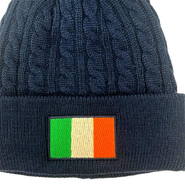 Custom House Headwear Plain Cable Knit Beanie Navy Irish Flag Embroidery
