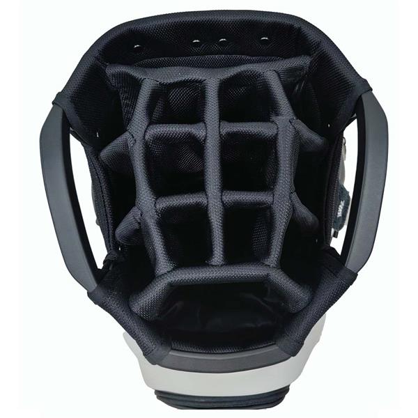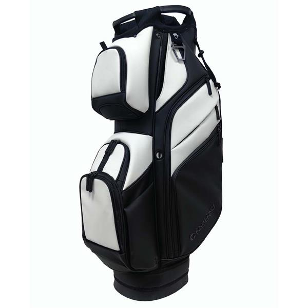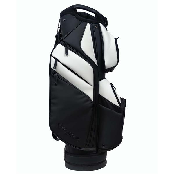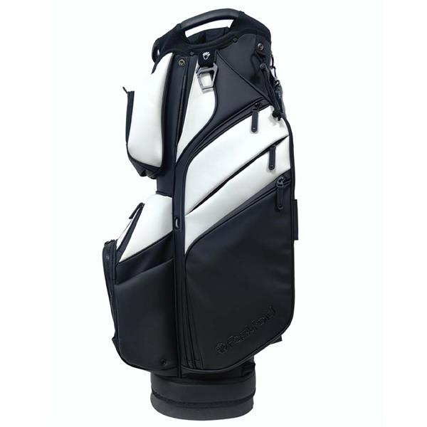 The Fastfold Elegance cart bag in black/white combines refined design with practical functionality for golfers who appreciate organized convenience.