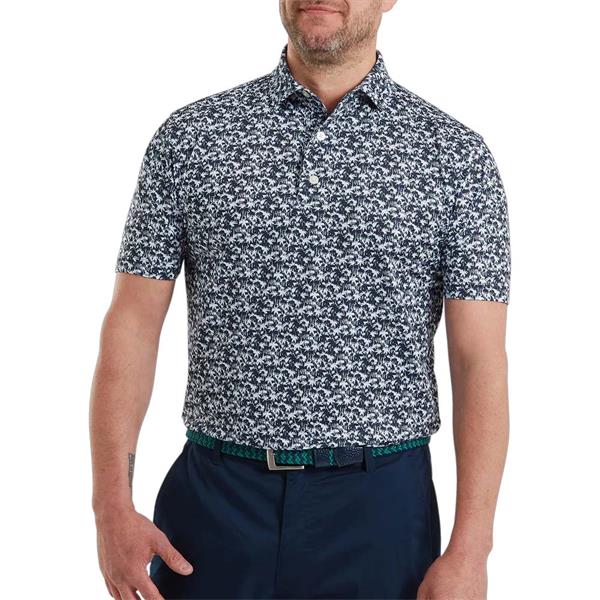 FootJoy Gents Hidden Palm P Lisle Polo Shirt Navy White