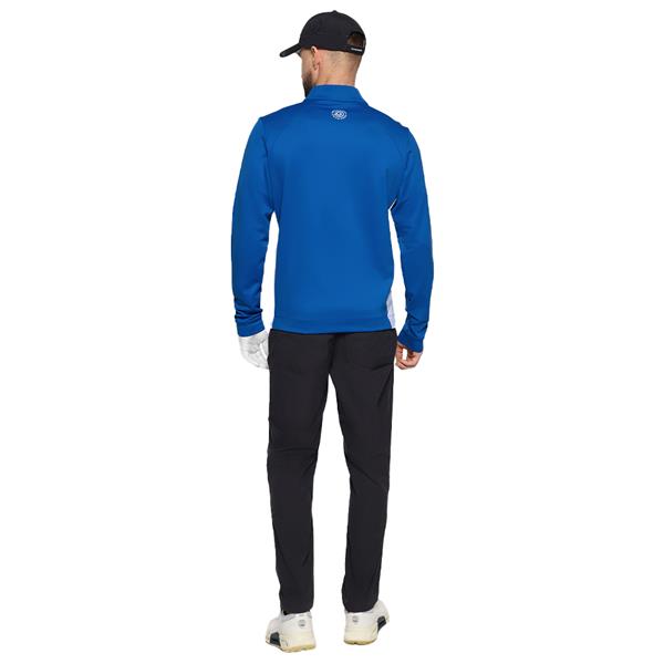 This soft, stretchy fabric is bluesign® approved and a recycled polyester that’s ideal for the changing conditions of golf. Features of this thermal zip up include a subtle print on the sleeve and front pockets. Wear it as a light jacket on warmer days, and as a mid layer when it is cold.