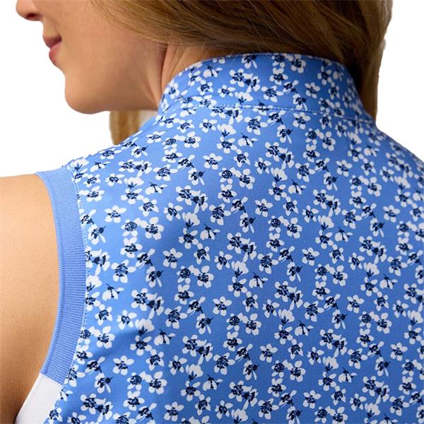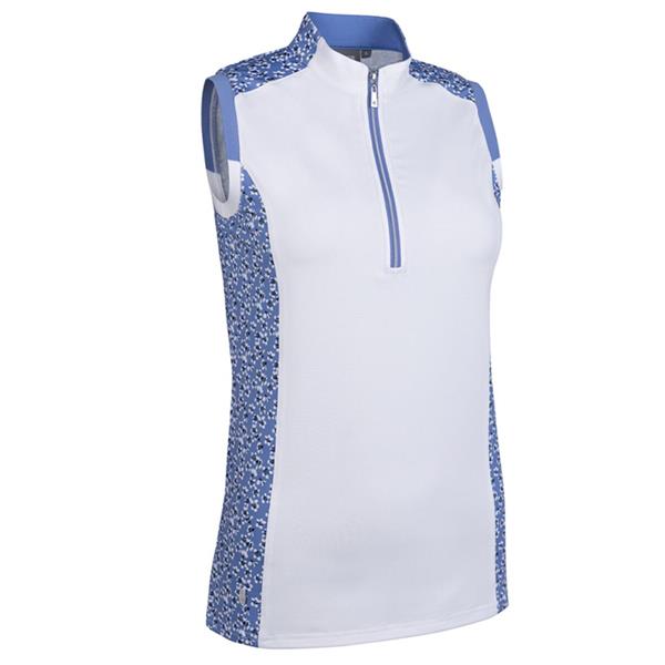 Glenmuir Ladies Alice Printed Panel Zip Sleeveless Performance Shirt White - Light Blue Flowers