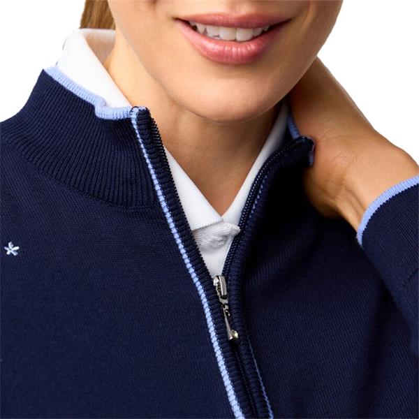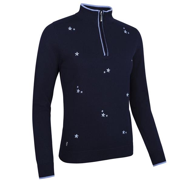 Glenmuir Ladies Lily Quarter Zip Floral Embroidery Cotton Sweater Navy - Light Blue