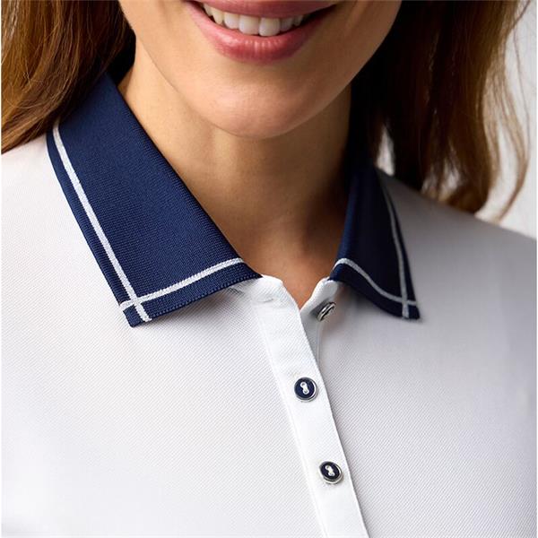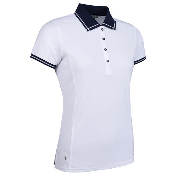 Glenmuir Ladies Zara Lurex Tipping Performance Pique Polo Shirt White - Navy