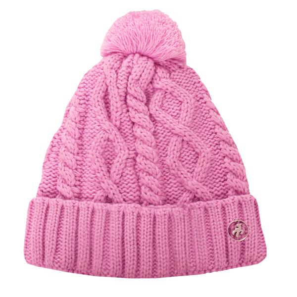 Green Lamb Krista Fleece Lined Cable Hat with Pom Pom Bubble Gum