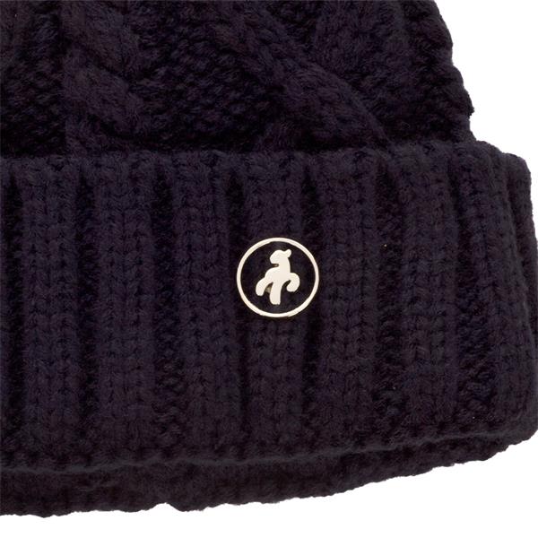Green Lamb Krista Fleece Lined Cable Hat with Pom Pom Navy