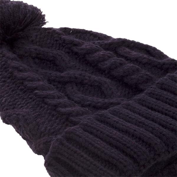 - Cable stitch beanie hat with bobble