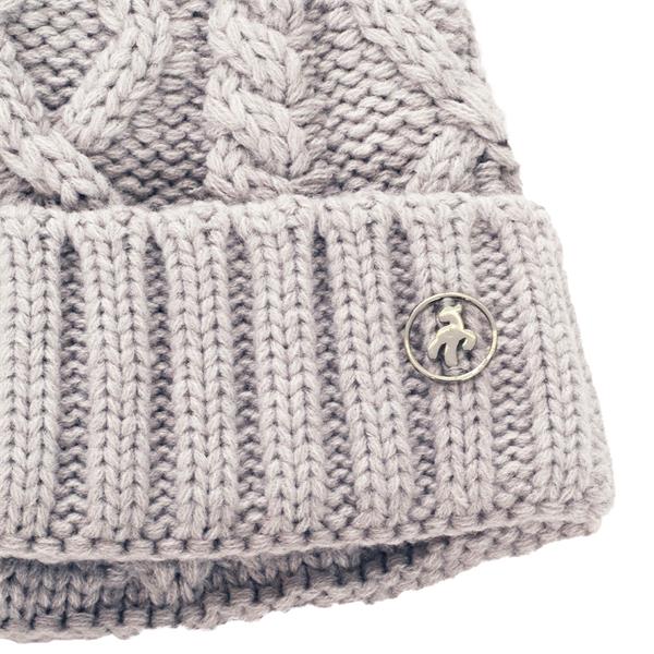 The Krista beanie hat from Green Lamb sports an attractive cable stitch pattern with rib knit turn up and will be the icing on the cake for your look this winter. Fleece lined and adorned with a circular silver Green Lamb logo plaque this beanie is both cozy and chic.