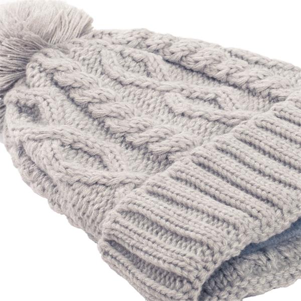 - Cable stitch beanie hat with bobble