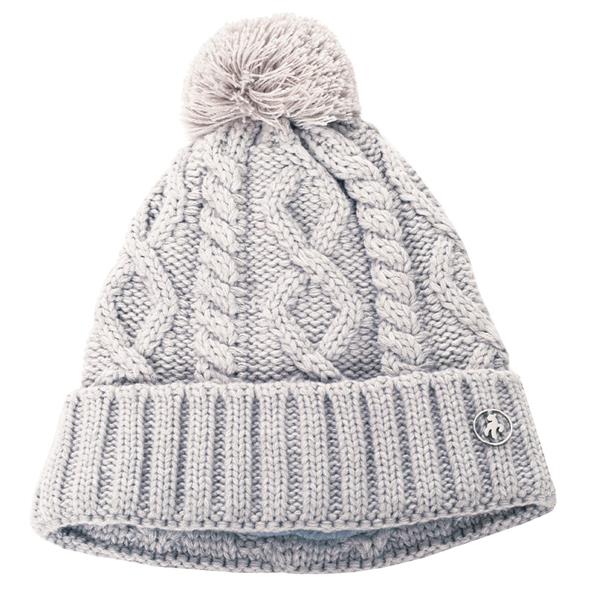 Green Lamb Krista Fleece Lined Cable Hat with Pom Pom Silver Marl