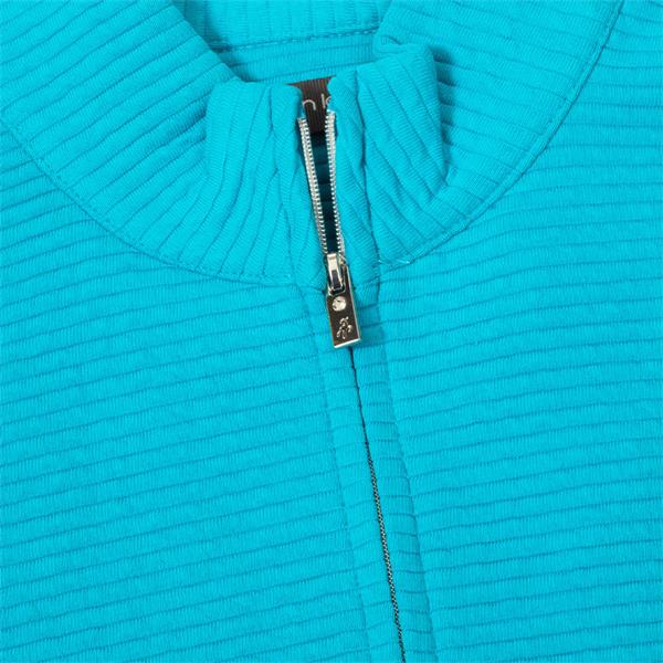 The Miranda Ottoman Jacket from Green Lamb combines horizontal ottoman ribbed panels with diagonal ones for maximum impact in this chic cover-up that will work in any setting. Understated design at its best this jacket will cut a dash on and off the course. The high performing fabric is lightweight and breathable boasting added stretch for maximum comfort and great fit.