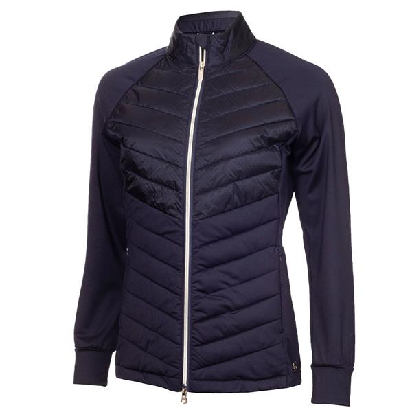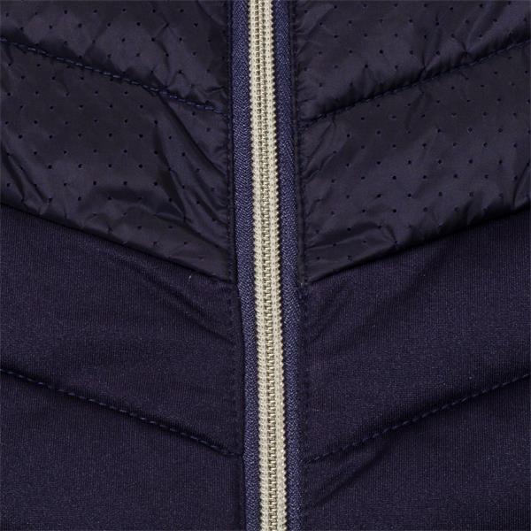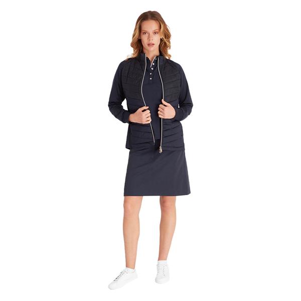 A fusion of fashion and function the Nola Jacket from Green Lamb is the outright winner on the course. A stunning outer layer that lets you play in complete comfort while providing the warmth you need. The feather light soft padding provides protection from the elements. The main body is made from a soft, stretch-enhanced jersey fabric for superior fit and comfort. Delicate laser cut detailing of the woven front panel is a design highlight.