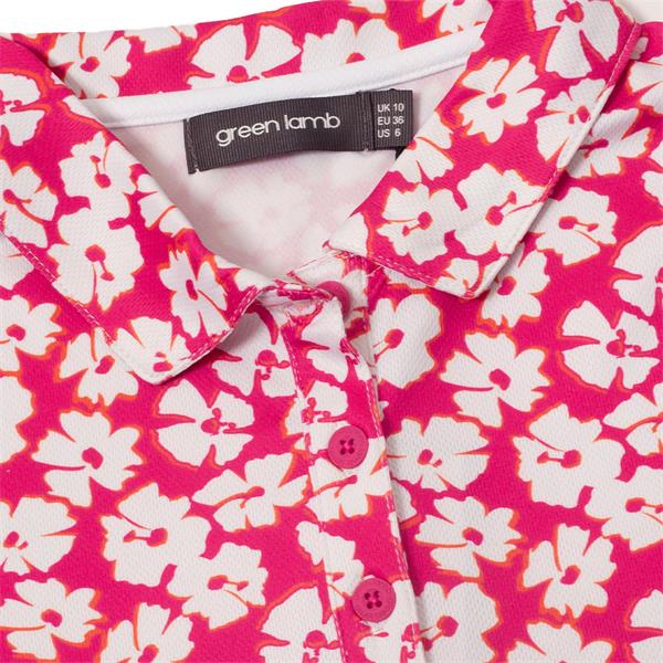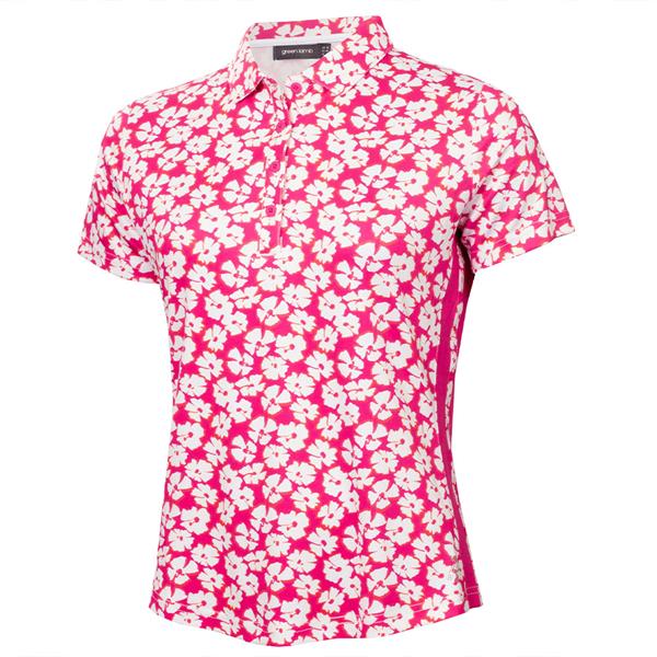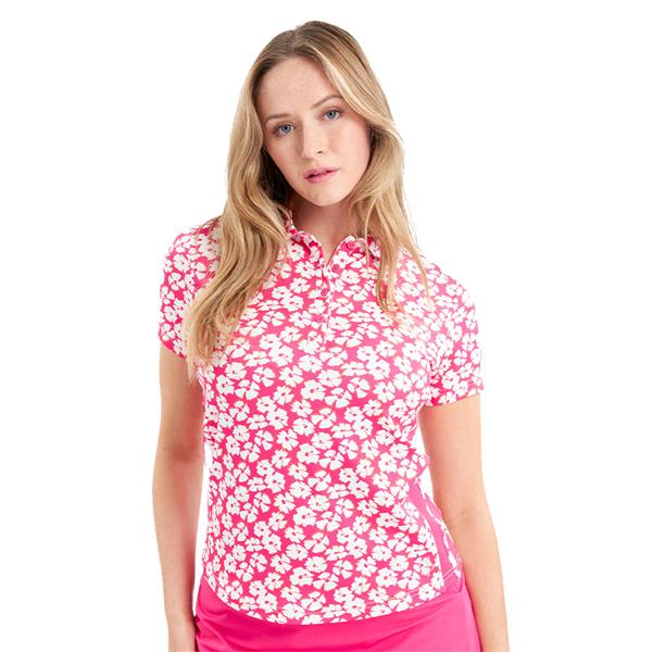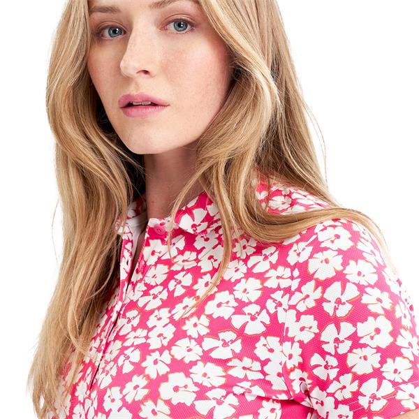 Green Lamb Ladies Odelle Printed Polo Shirt Carnation Print