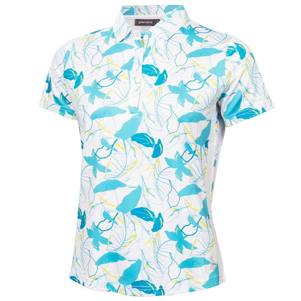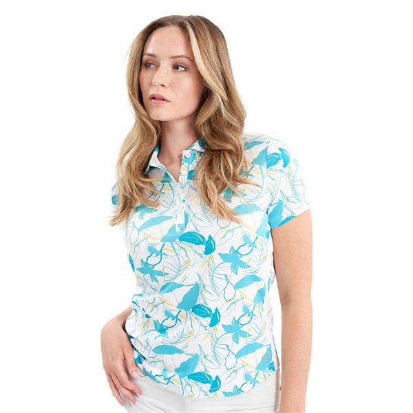 Green Lamb Ladies Odelle Printed Polo Shirt Sixties Print