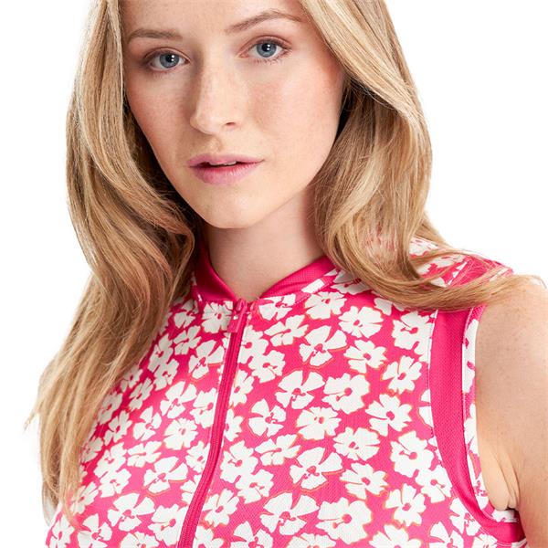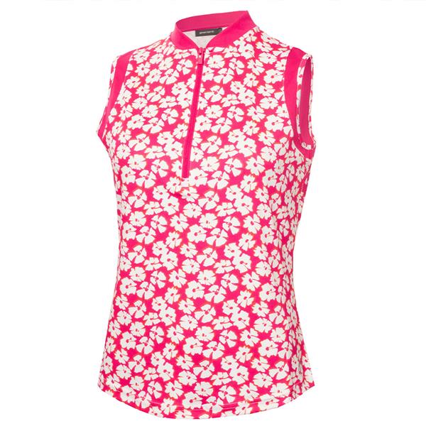 Green Lamb Ladies Odessa Sleeveless Printed Polo Shirt Carnation Print