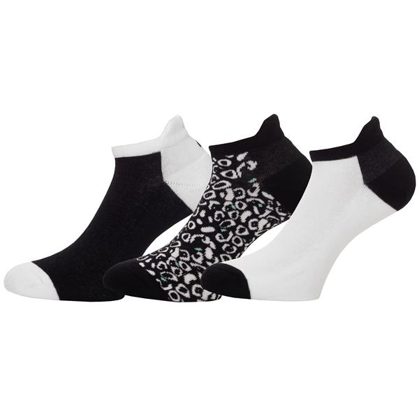 Three pair pack of low-cut ankle socks featuring mix of collection coordinating pattern and colourblock styles.