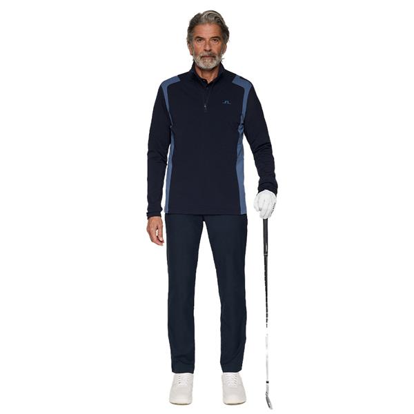 Versatile and ventilated. The Lukas Mid Layer features cut-and-sew panels, chin guard, and brushed warmth inside. Moisture-wicking with 4-way stretch for movement — finished with a stay-down zip and J.Lindeberg branding.