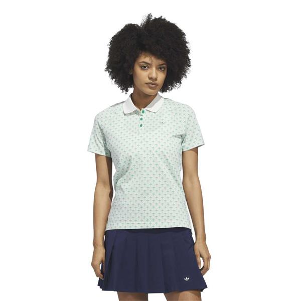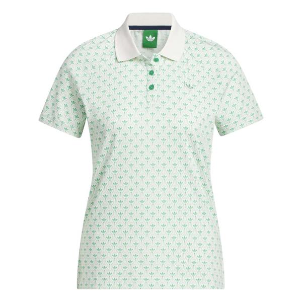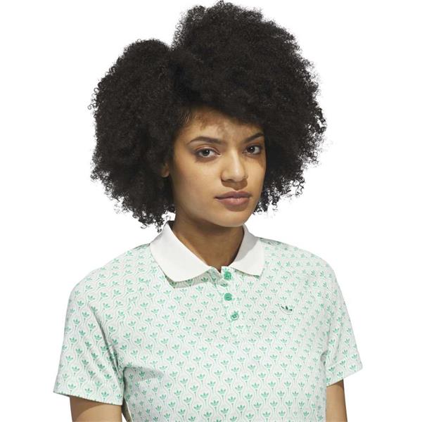 adidas Golf Originals Ladies All Over Trefoil Polo Shirt Court Green - Chalk White