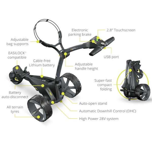 Connect to the Motocaddy GPS app on any compatible Smartphone - Next generation, High Power 28V system