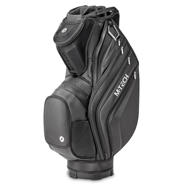 Crafted from high-quality PU fabric with carbon-inspired styling and prominent thermoformed panels, the M-TECH bag offers ten spacious pockets for garments, accessories, and valuables, along with an insulated food and beverage pocket and an easy-access external drinks pouch. Additional features include an umbrella sleeve, pen holder, scorecard compartment, and an anti-twist base with EASILOCK® compatibility.