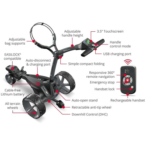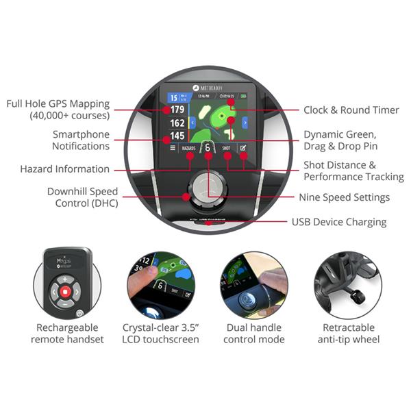 Offering ultimate responsive control, the new M7 GPS REMOTE is the world's most intelligent remote-controlled electric golf trolley. It features quick and accurate high-performance GPS for over 40,000 courses worldwide, displayed on a stunning 3.5” touchscreen. An extensive array of high-tech features includes Bluetooth® smartphone notifications, super-fast WIFI Over-the-Air updates, and free lifetime access to full-hole GPS mapping and performance tracking.