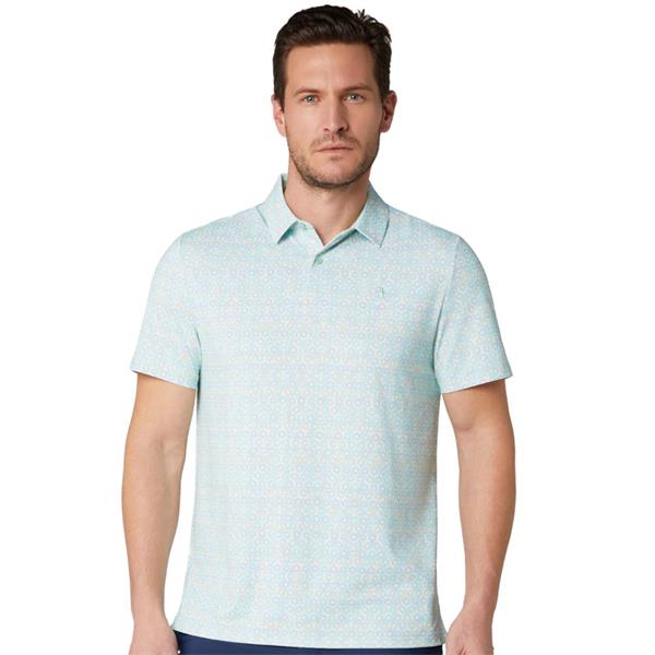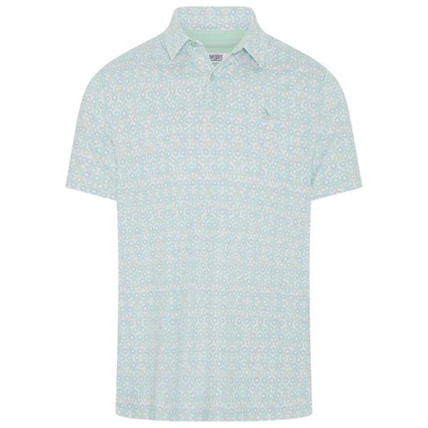 This snazzy Original Penguin men's polo shirt is here to infuse some serious swagger into your wardrobe with its vibrant framed floral print. Crafted from a lightweight single knit fabric, this short sleeve polo offers impressive comfort for all-day wear. Boasting moisture-wicking technology to keep you feeling cool and enhanced with stretch for ultimate flexibility, this performance polo shirt is ready for anything your day throws at it. Plus, with recycled polyester in the mix, you'll be rocking an awesome look that feels good in every way. The self collar ensures a sleek finish, making it a stellar pick for those who like to stand out.