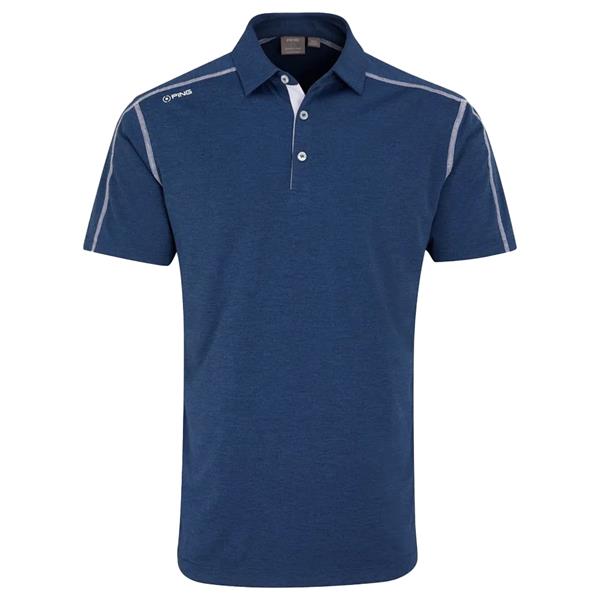 Discover classic style with the men's Fynn Heathered Polo in Navy Marl. The heathered fabric offers a timeless appeal, complemented by a white under placket and contrast white cover stitch details. Engineered for moisture-wicking performance, this polo ensures all-day comfort whether on the course or off. The three-button placket and iconic PING Eye logo on the shoulder provide the perfect finishing touches.