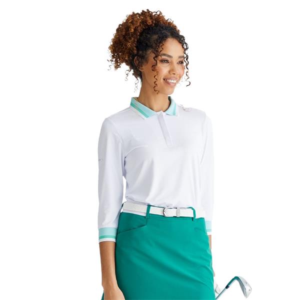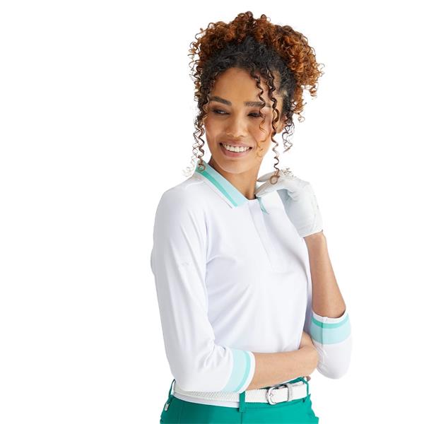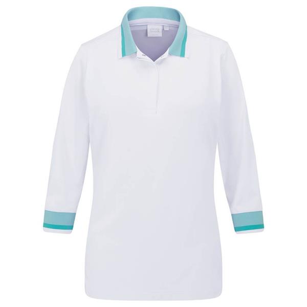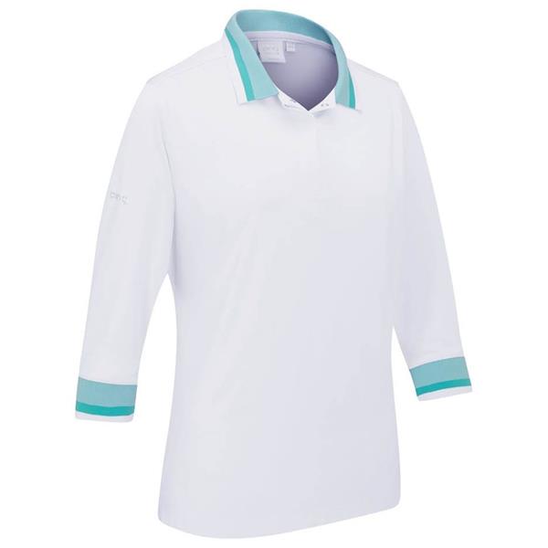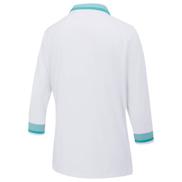 Ping Ladies Lindsey 3/4 Sleeve Polo Shirt White - Bright Aqua