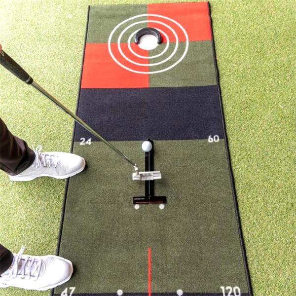 Pure2Improve Aim Target is a simple way to check your aim and line to the hole. Put the aim target against or under your putter to identify the perfect line. The Aim Target can be fixed to the green. Ideal in combination with the Pure2Improve putting mats, ghost holes and alignment balls.