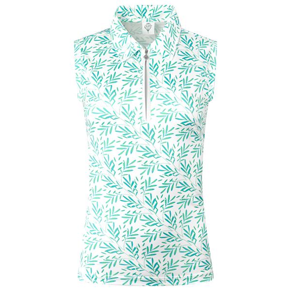 Pure Golf Ladies Amity Sleeveless Polo Shirt Floating Palms White
