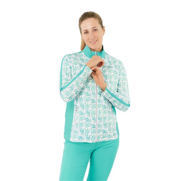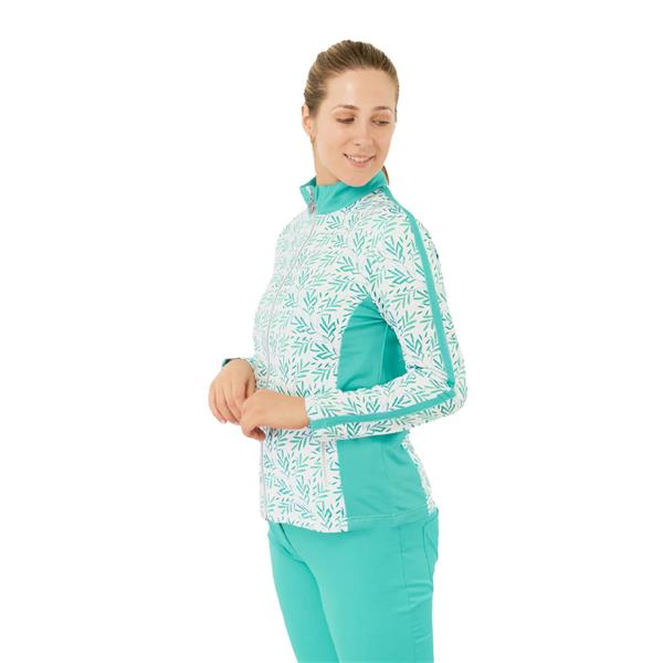 Introducing the Gella Long Sleeve Ladies Golf Mid Layer Jacket in Floating Palms White - a stylish and high-performing choice for any golfer. This full print zip top with a striking botanical print on a crisp white background will certainly standout on the green, equipped with a variety of features to elevate your golf game. Discover why the Serenity Long Sleeve Zip Top is a essential for your golfing wardrobe!