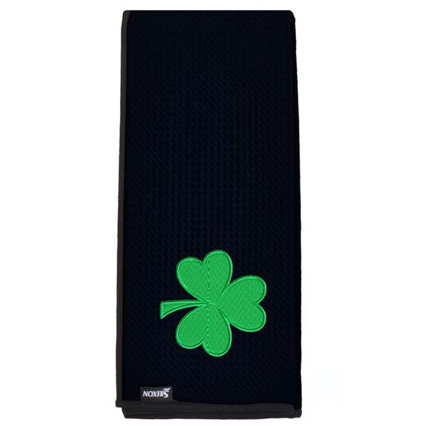 Premium Microfibre Tri-Fold Towel with embroidered green shamrock