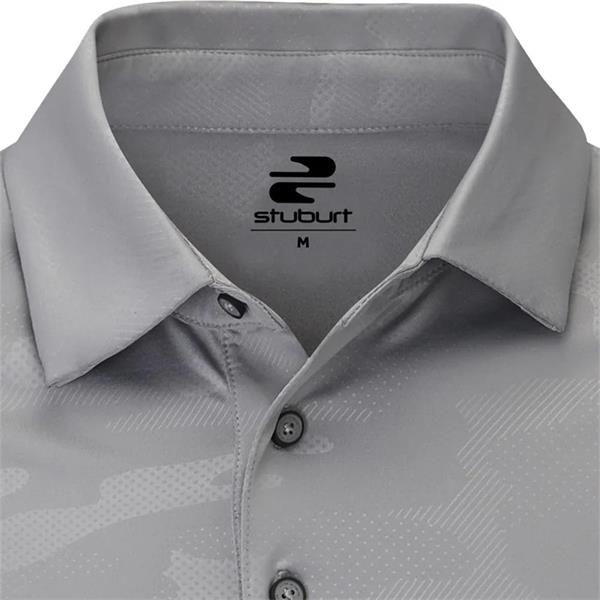 Elevate your style on the course with the Stuburt Dipper Polo Shirt. This modern polo boasts an eye-catching all-over tonal camo jacquard pattern, adding a touch of sophistication to your game. Designed for comfort and performance, it features UV50 protection to shield you from harmful rays, while breathable and moisture-wicking fabric keeps you cool and dry throughout your round. The contrasting side buttons with Stuburt branding complete the look.