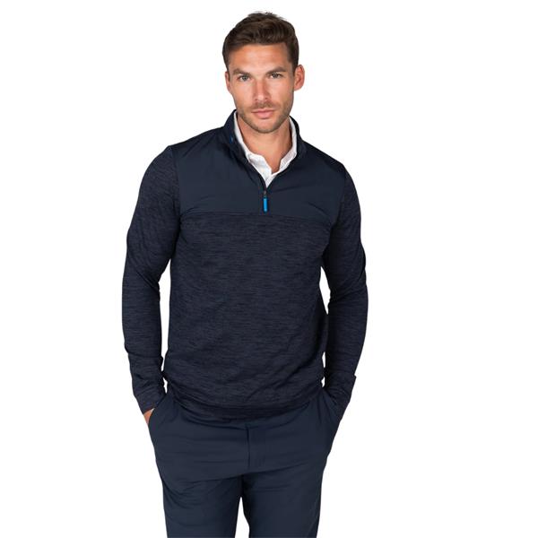 - Quarter-zip mid layer made from soft stretch fabric for comfort and flexibility.