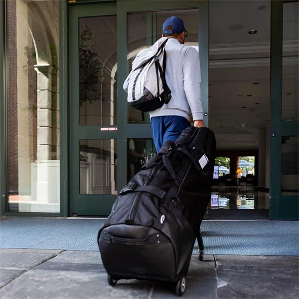 The Meridian minimizes the hassle of traveling with your golf gear. Dense foam padding through the top of the bag protects your clubs; the leg mechanism supports the weight of your bag; and the pivoting wheels make the bag highly maneuverable.