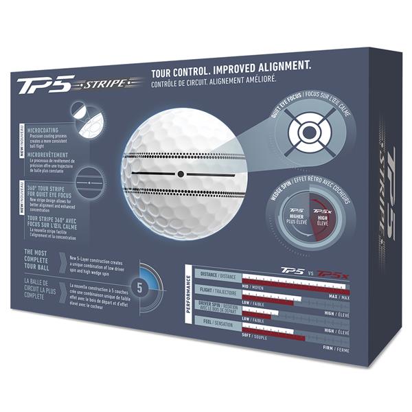 TP5 Stripe employs an all-new Tour Stripe with 360° ClearPath Alignment™, tighter feedback lines, and a performance dot that allows you to achieve hyper focus on the green and hole more putts.