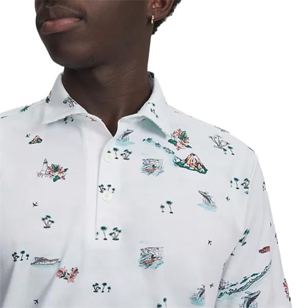 Under Armour Gents ArmourDry Golf Trip Printed Polo Shirt White - Rack Green - Black (100)