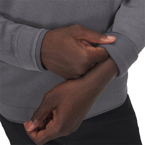 - SweaterFleece fabric with subtle grid texture has a soft, brushed interior with stretch for complete mobility